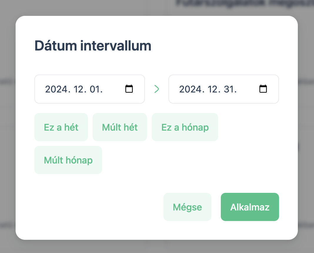 - Összes szállítási díj: Az adott időszakban összesen kifizetett szállítási díjak.