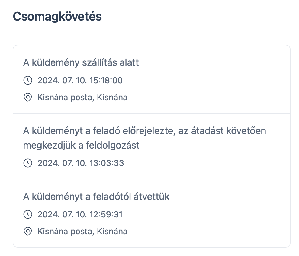 A vásárlónak küldött csomagkövetési link a tracking.kvikk.hu oldalra mutat, ahol a Kvikk-es és a futár által adott követési számra is rá lehet keresni. Itt a vásárló egyszerűen, átlátható formában, telefonon is jól kinéző felületen láthatja a csomagjával kapcsolatos információit:
